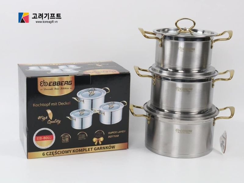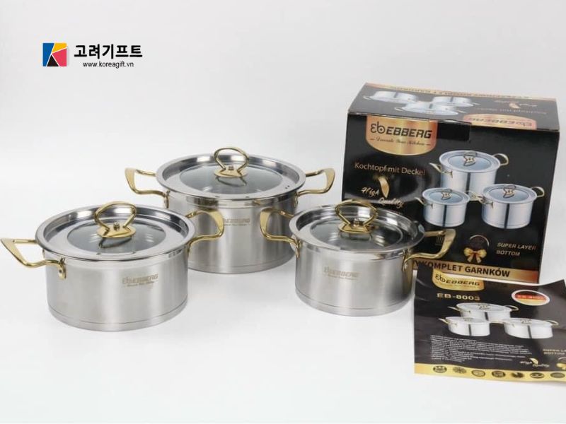 BỘ NỒI ĐỨC 3 MÓN INOX CAO CẤP EBBERG EB 8003 냄비 KG-01809 | ||||